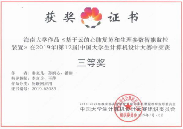 所获奖项:中国大学生计算机设计大赛全国三等奖(物联网组)