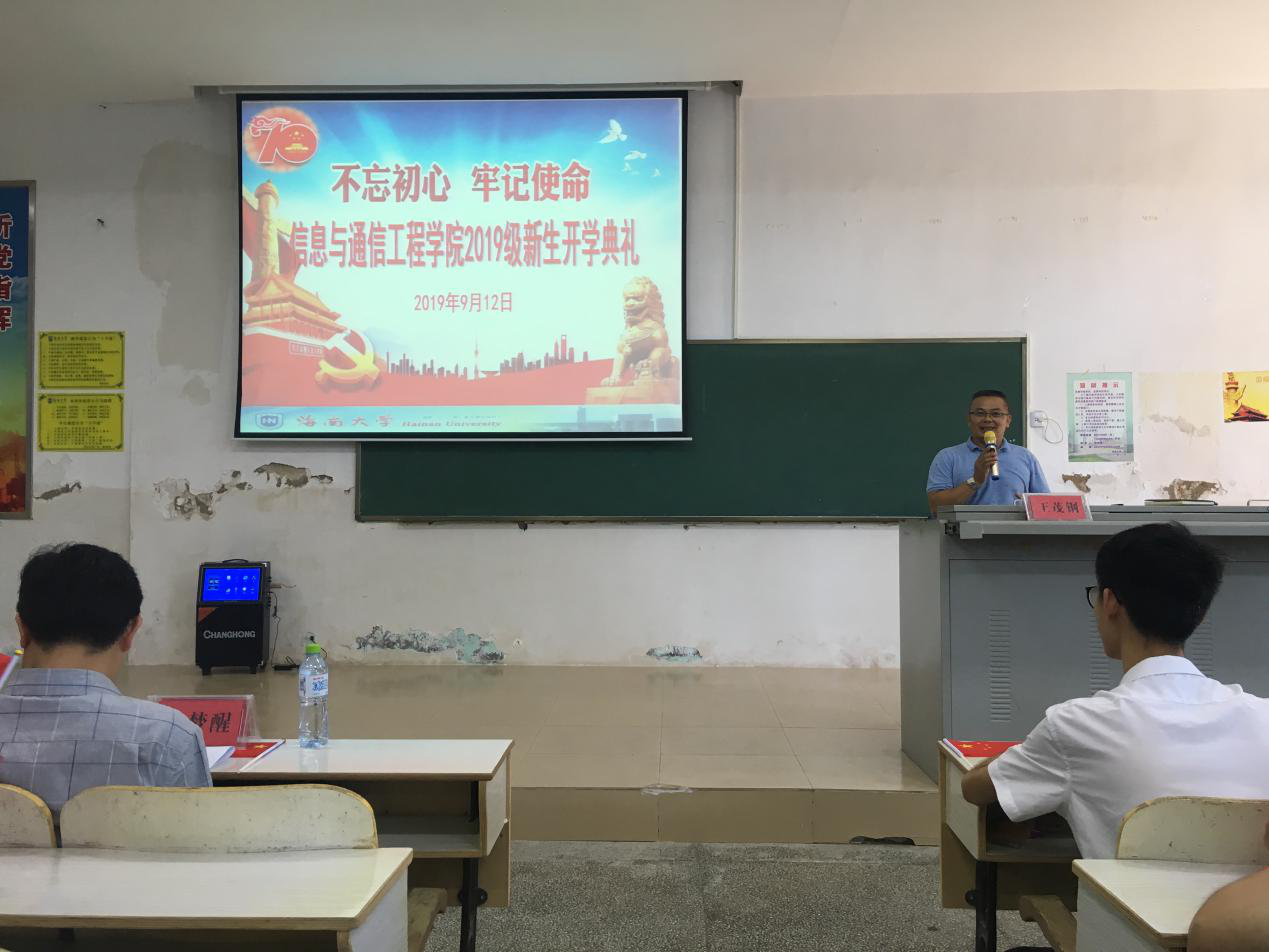 在这椰风送爽的金秋九月,买球体育官方网站迎来了270名2019级新生。2019年9月12日下午3点,买球在1T-101教室召开2019级新生开学典礼。学院院长黄梦醒、党委书记蒙秋妍、副院长张永辉、李晖、任佳、党委副书记王茂刚、各系主任、全体辅导员、班主任以及全体新生参加了开学典礼,典礼由王茂钢副书记主持。