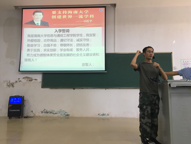 图7:李忠老师带领全体新生宣誓