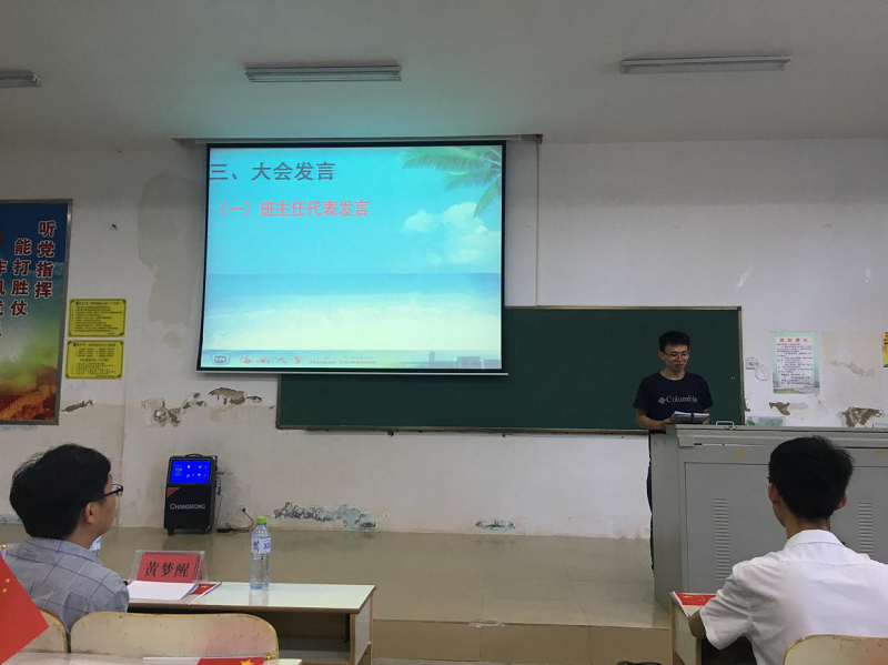 接着,班主任代表韩枝光老师向全体新生表达殷切嘱托。韩老师希望各位新生能尽快适应从高中生到大学生这一角色的转变,学习所需掌握的学科基础知识的同时积极扩展课外知识的储量,养成勤思考的好习惯。韩老师同时还强调,大学是同学们发掘自我、展现才能、增长自信的过程,希望2019级新生在脚踏实地学习的同时,仰望星空,展望未来。