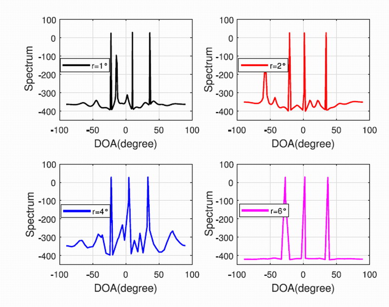 图3不同网格条件下目标定位检测空间谱
