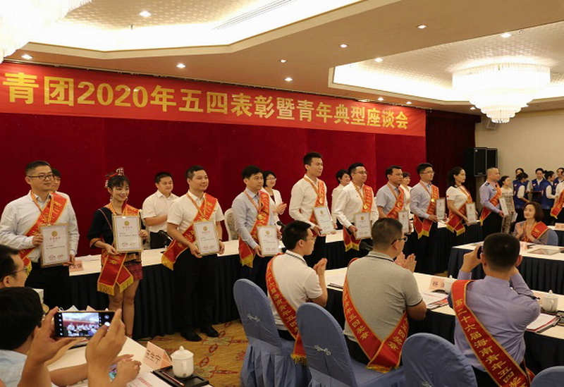 图2 任佳老师(左一)参加海南共青团2020年五四表彰暨青年典型座谈会