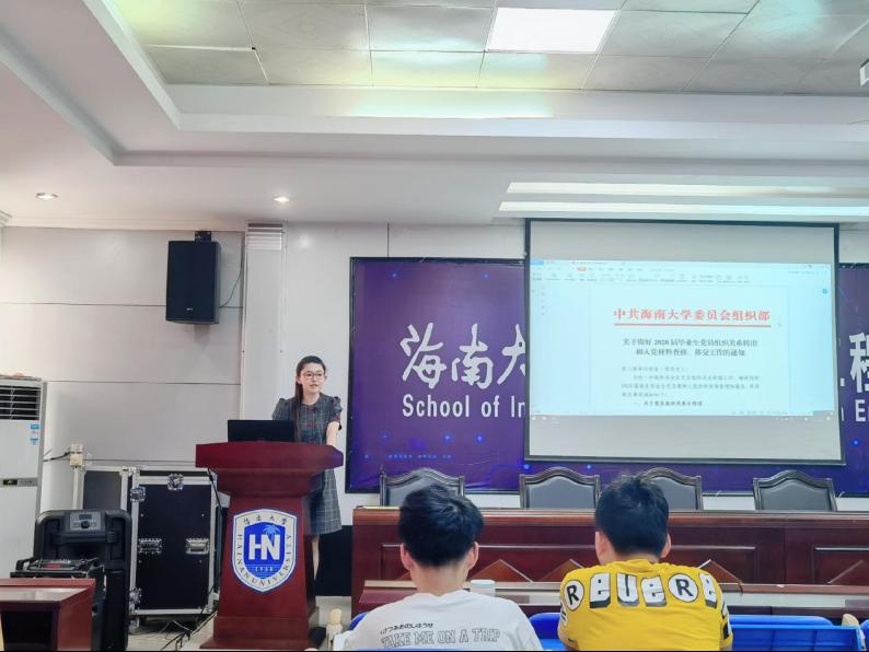随后,贾宝莹老师向同学们讲解党团组织关系转接等相关事宜。她就组织关系转出中的基本原则、具体流程以及去向表填写分别做了详细的说明,介绍了毕业生党员团员档案情况与组织关系转出的关系,并依照往年的工作经验,就相关注意事项做了特别说明,反复强调了同学们易忽视、易出错的地方。最后,贾老师就毕业生离校期间的各项工作进行了部署。