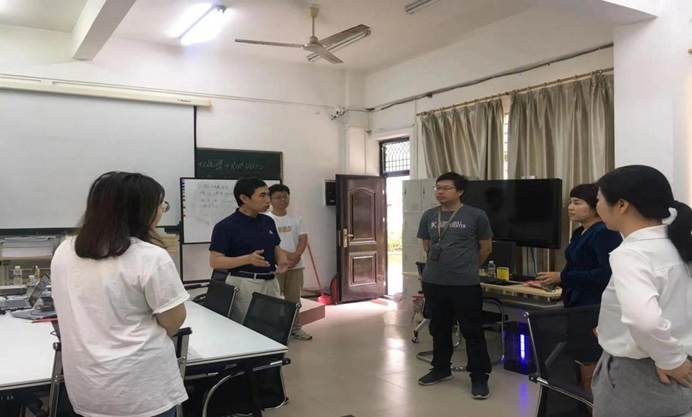 图二:黄梦醒院长(右三)、蒙秋妍书记(右二)了解工作进度