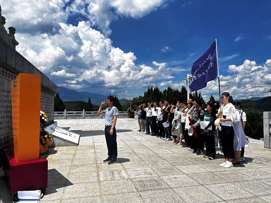 在五指山革命根据地纪念园,全体参加活动的教职工在英雄纪念碑前肃立默哀,黄国标书记和黄梦醒院长代表学院为革命先烈敬献花篮,随后,党员同志们再次重温入党誓词,学习琼崖革命红色历史,缅怀革命先烈的丰功伟绩,牢记共产党人的初心使命,感受红色精神力量。