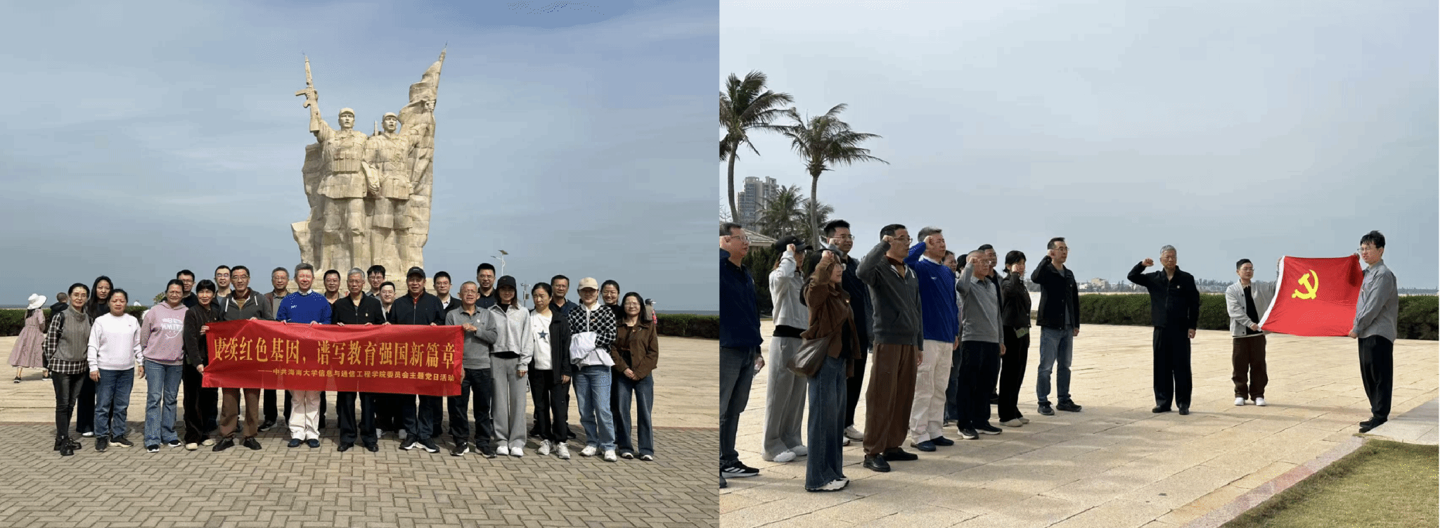 为深化爱国主义教育,传承奋斗精神,将红色基因融入学科建设与人才培养全过程。买球体育官方网站党委于11月29日至30日前往临高、儋州开展“赓续红色基因,谱写教育强国新篇章”主题党日活动,先后走进临高角解放公园、买球体育官方网站儋州校区、中国热带农业科学院联昌试验站旧址、松涛水库纪念馆等地,在实地调研中坚定理想信念,凝聚实干担当精神。