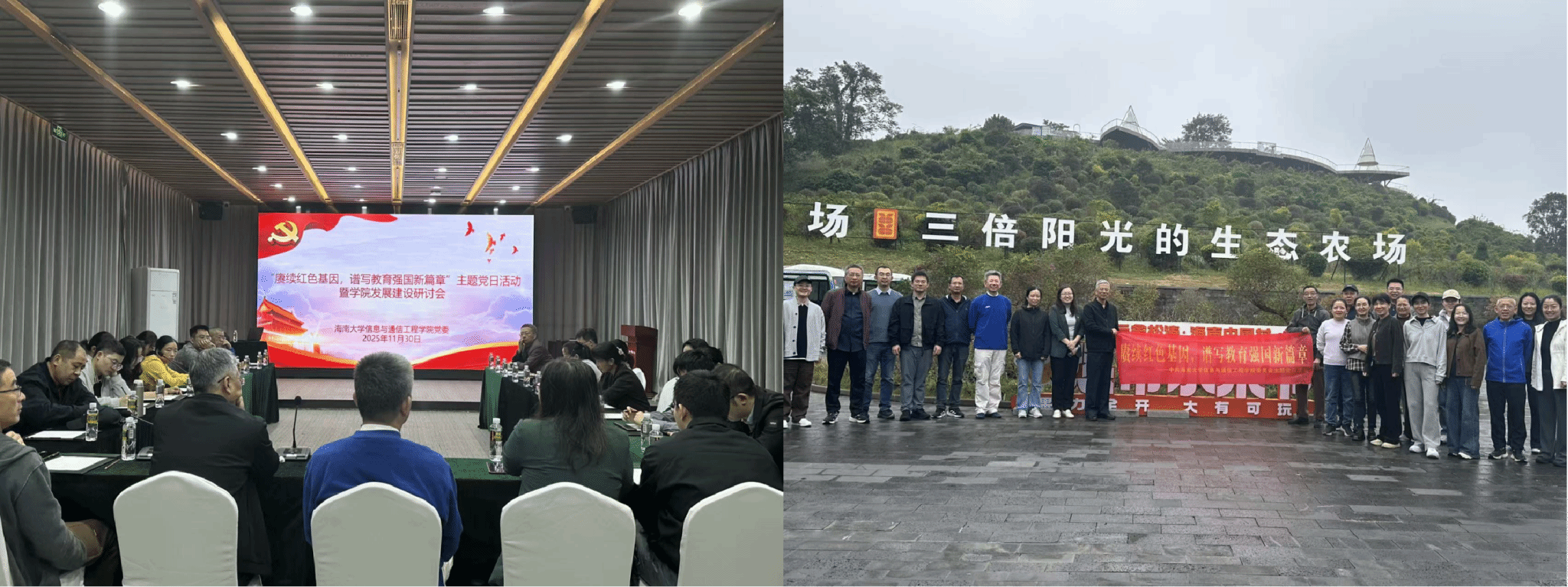 11月30日,党建活动在海南中国村继续开展,参与者们走访调研该村生态农业建设与智慧管理模式,并召开学院高质量发展座谈会。会上,同志们结合本次实践教育的感悟,围绕学院“十五五”规划、学科建设和人才培养建言献策,大家纷纷表示,要继承发扬好先辈们的光荣传统,增强历史使命感和责任感,立足本职岗位为建设教育强国、“创建世界一流大学”奉献力量。邓秀成书记强调,此次党建活动实现了“红色教育+精神传承+发展研讨”的有机融合,学习成果将凝聚为学院发展的宝贵财富。