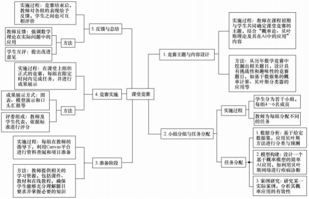 在知识点教授尾段设课堂竞赛, 如图 5 所示。例如, 围绕概率论与贝叶斯理论应用,各小组分析AI 案例数据、进行预测并展示方案,将理论转为实操技能。此外,经过课堂竞赛的推动,学生们的学习兴趣被进一步激发,对后续学习展现出更加高涨的热情。至此,一个包含“兴趣启发、项目进阶、 AI 陪练、课堂竞赛”四个环节的闭环教学模式得以形成。