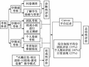 最终成绩通过综合加权系统评定,涵盖团队评估(35%)、个人期末评估(40%)及日常表现(25%)。团队评估包括学期中团队考核、项目进阶及课堂竞赛成绩;日常表现基于课堂、出勤、线上学习和课后检测情况。基于这种多元考核最终可以得到每位学生的总结性评价,有助于系统地评估学习成果和学习目标达成情况。该创新性评价方式更为准确地衡量了学生的综合素质和实践技能, 充分发挥了评价在教学过程中的积极作用。