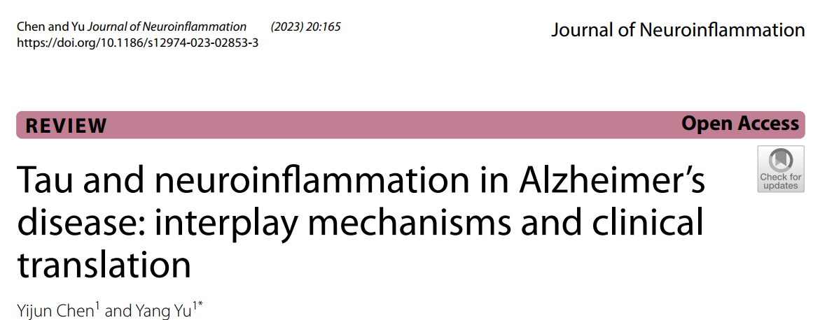 另可参见公众号《逻辑神经科学》2023年8月8日发布的特邀稿:“J Neuroinflammation综述︱世界杯官网入口于洋团队评述Tau蛋白与神经炎症在阿尔茨海默病中的相互作用及临床应用前景”。