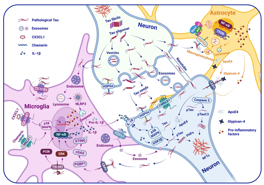 图1. 神经炎症与tau蛋白相互作用示意图(图源: Chen Y, Yu Y., J Neuroinflammation, 2023)