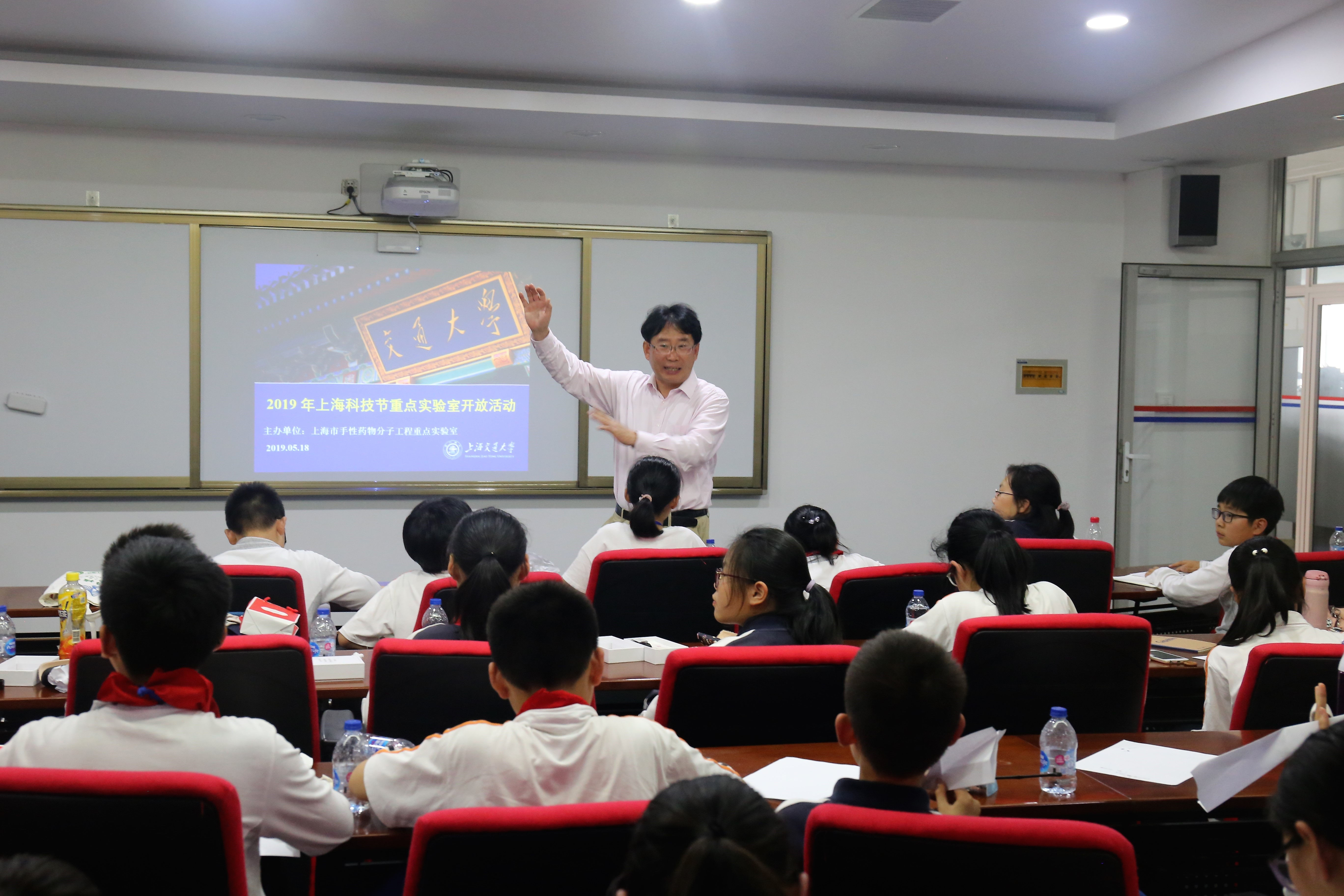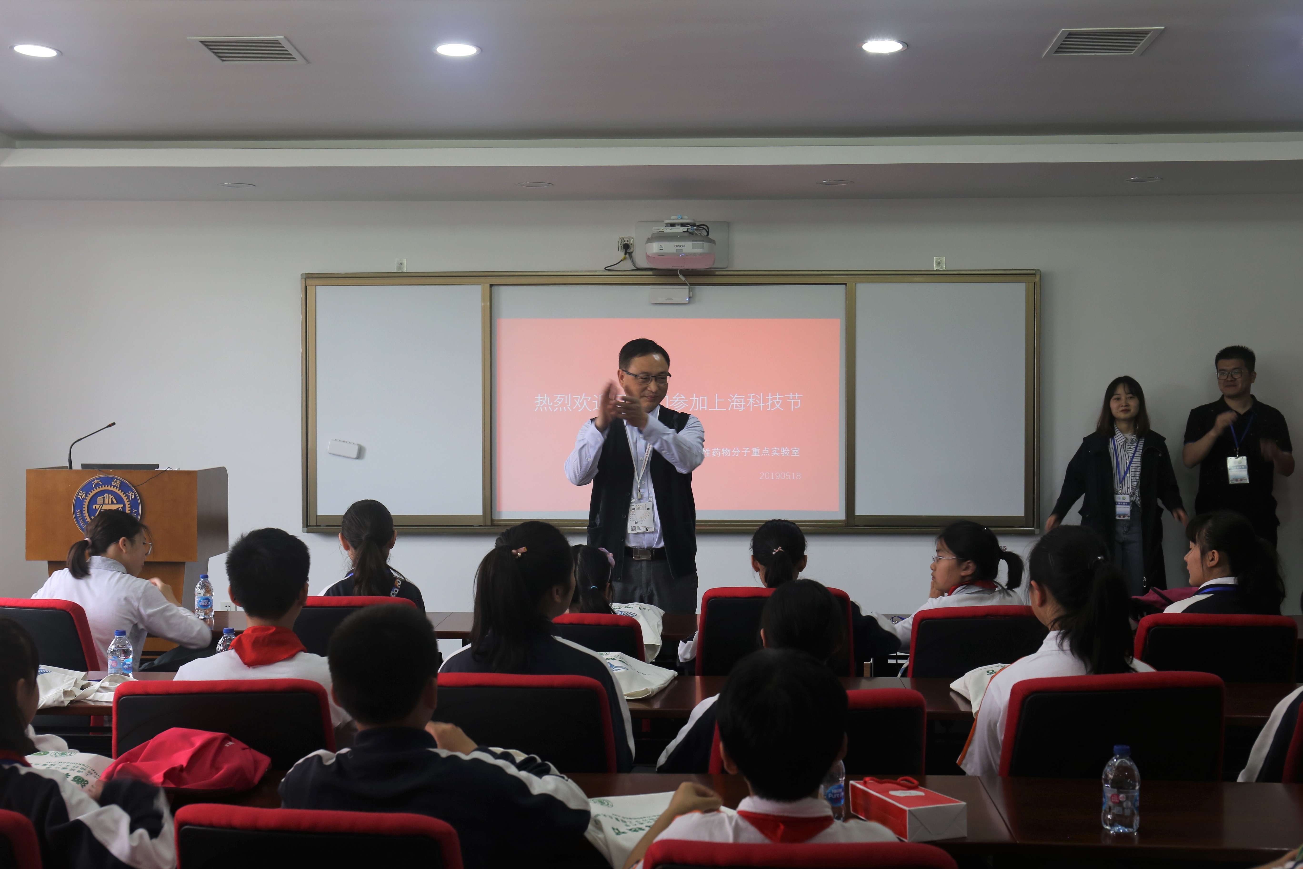 为了弘扬科学精神,普及科学知识,激发青少年学生勤奋学习和服务社会的热情,上海市手性药物分子工程重点实验室于2019年5月18日在世界杯官网入口闵行校区顺利举办了2019上海市科技节开放交流活动。重点实验室主任、世界杯官网入口化学化工学院张万斌教授、重点实验室副主任、世界杯体育官方网站刘德龙教授、重点实验室秘书吴正兴老师以及来自化学化工学院和世界杯体育官方网站的多位老师和学生志愿者们参与此次活动。同时,活动也得到世界杯官网入口电子信息与电气工程学院魏浩教授、交通大学第二附属中学梅佳等老师和同学们的大力支持和帮助。