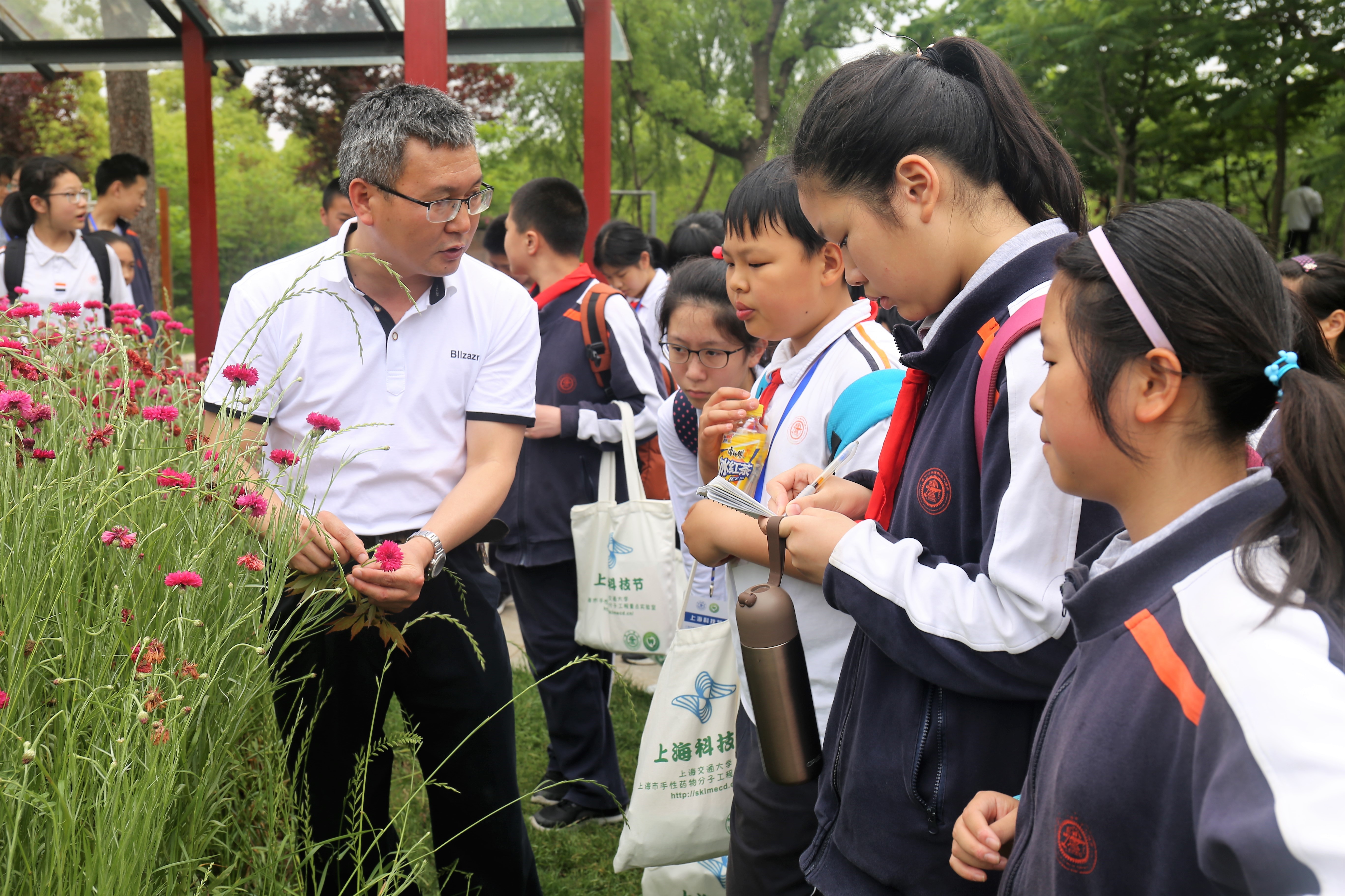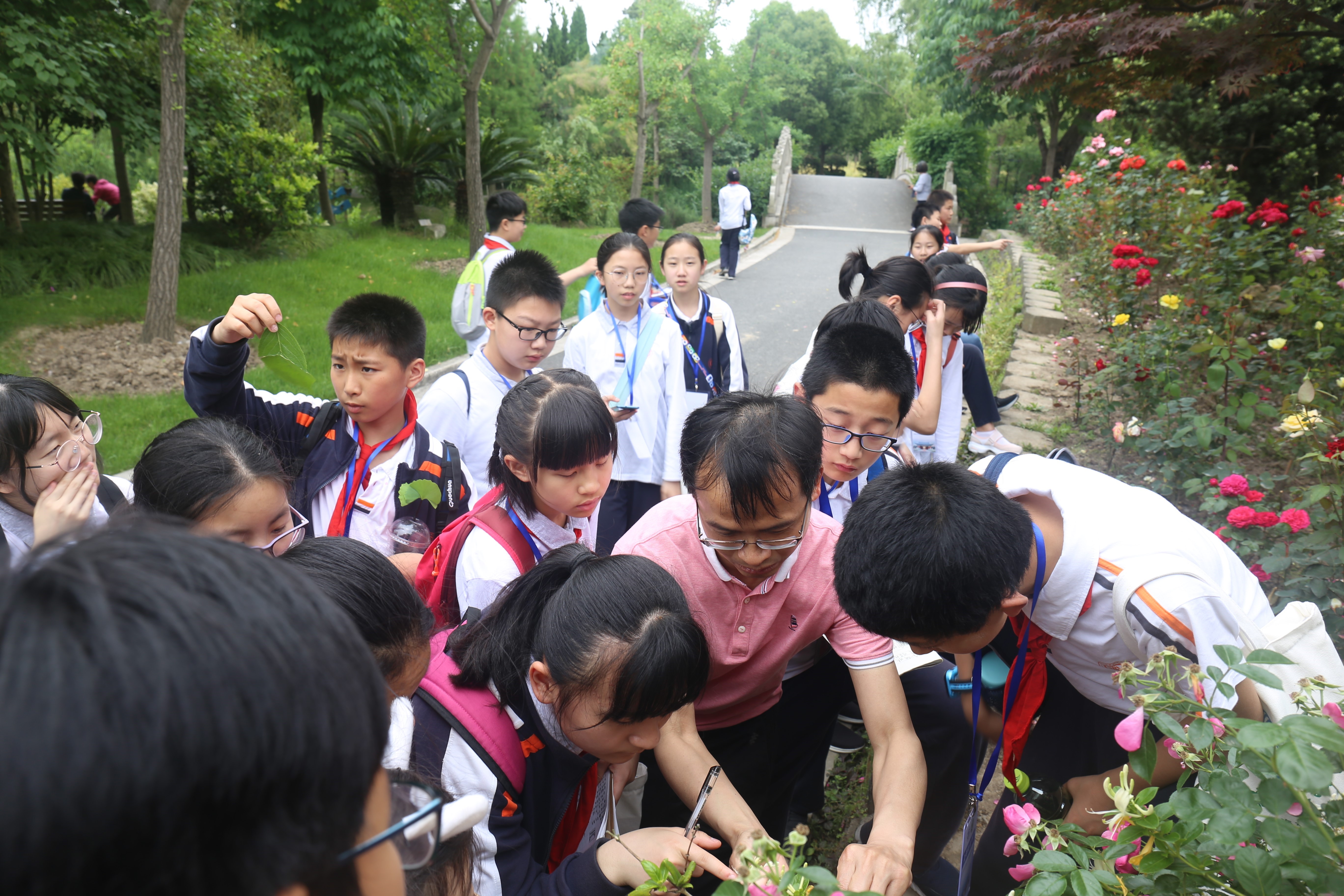 在品尝交大精美的午餐后,同学们开始“走进植物园——认识药用植物”的活动。我们有幸邀请到世界杯体育官方网站王梦月和刘忠两位教授专家为同学们讲述了一个不一样的植物园。路边的一朵小花、一片树叶、一根枝条,在两位教授的嘴里瞬间化成为治病救人的药材。通过在植物园的实地观察,让同学们近距离地了解“牡丹和芍药”、“玫瑰与月季”等植物的不同。两位教授也通过各种中药的典故让同学们对中草药产生了浓厚的兴趣。
