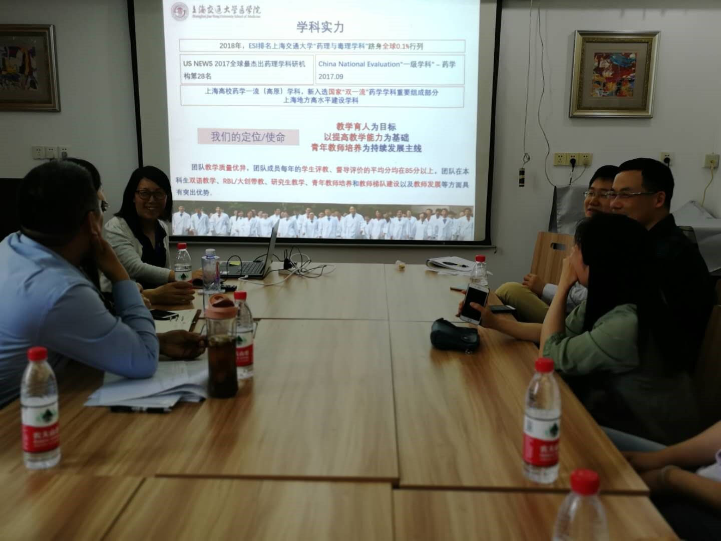 参观结束后进行了座谈,世界杯体育官方网站药物研制支部书记邱明丰研究员、副院长、党委委员和药理与化学生物学支部书记李娟副教授分别介绍了支部的发展、科研、教学等,药理系常务副主任朱亮教授、党委委员对药理与化学生物学科特色进行了总结,副书记兼副院长张宝红副教授对学科评估中基础医学院给予的支持表示感谢并希望继续共同努力“”双一流建设”、共同迎接即将到来的新一轮学科评估。随后,两个支部党员们重点介绍了各自在教学与科研的心得和经验、科研合作兴趣与需求、学生培养等方面进行了进一步的交流。同时,同志们深入探讨如何通过合作来共同推动更高层次上建设世界杯官网入口一流药学学科。现场气氛热烈,大家一致表示以后要加强双方的互动,促进优势互补,紧密合作。最后合影留恋,并期待再次开展联合主题党日活动。