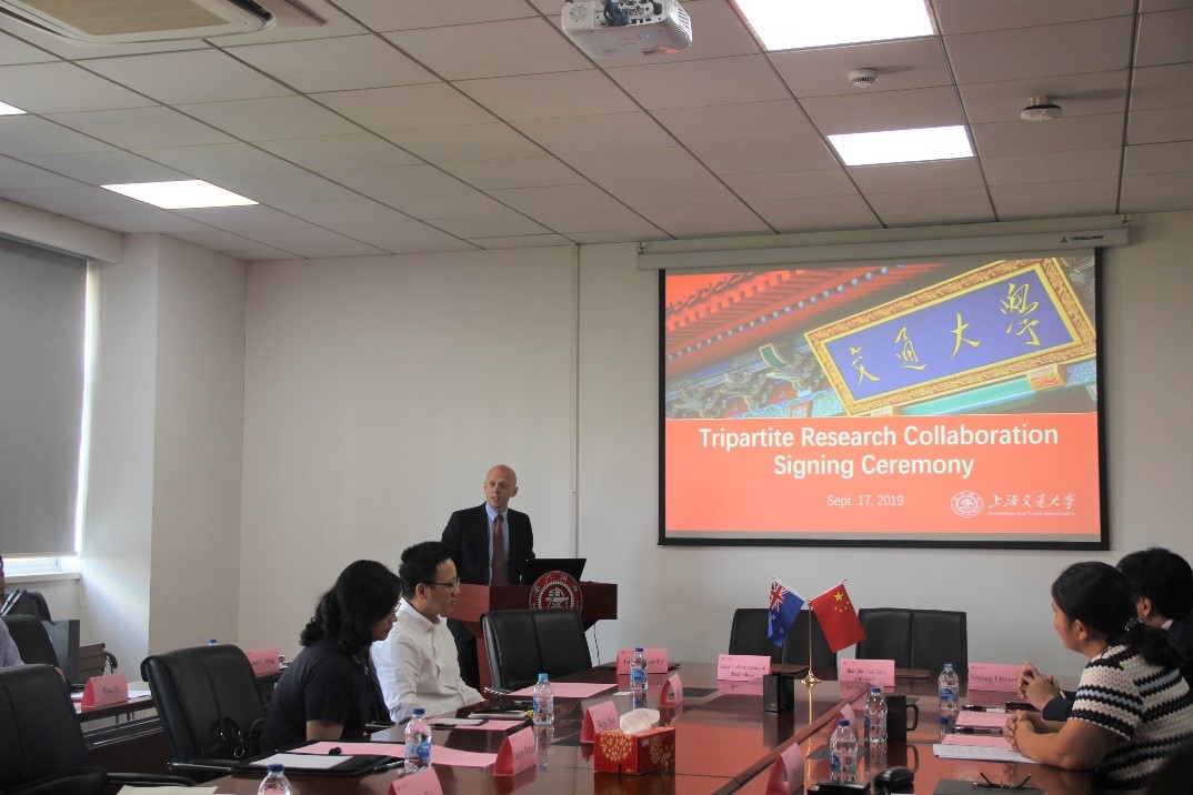 Andrew Robinson对上海交大和世界杯体育官方网站的热情接待表示感谢。他说,中国是新西兰全球五大研究合作伙伴之一,他们认识到中国一直致力于加强东部和西部地区合作与发展,他们也在积极寻找新西兰可以参与其中的机遇。该协议的签订正体现了新西兰与中国在科学研究领域的联系。奥克兰理工大学与上海交大、复旦大学、新疆大学的合作将跨越生物医学、心理学、心理健康、公共卫生、食品科学等医药卫生研究领域,为四所大学今后更进一步的交流开辟了新的篇章。