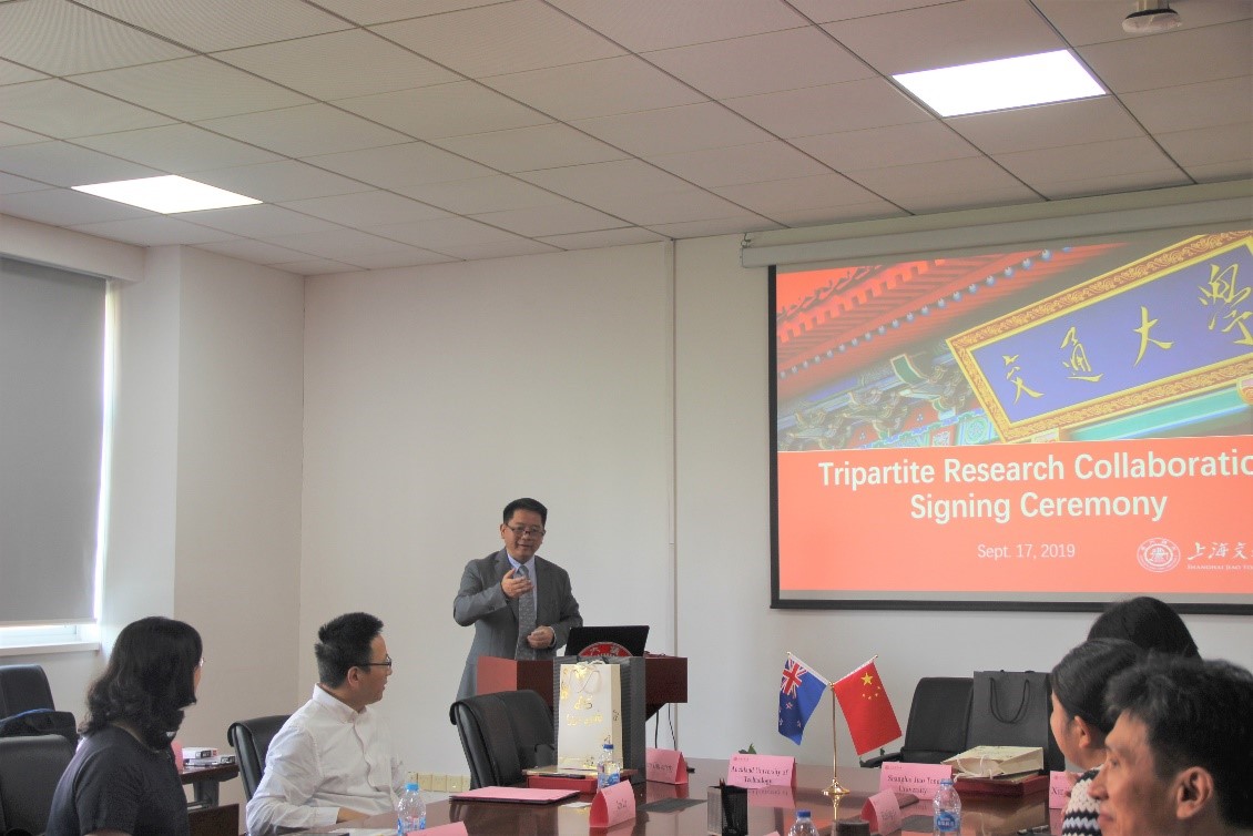 罗鹏代表上海交大向来宾表示了热烈欢迎。他表示,国际化是上海交大发展成世界一流大学的重要战略之一,希望以本次协议的签订为契机,提升和促进奥克兰理工大学与复旦大学、新疆大学和世界杯官网入口在科研方面的合作与交流。