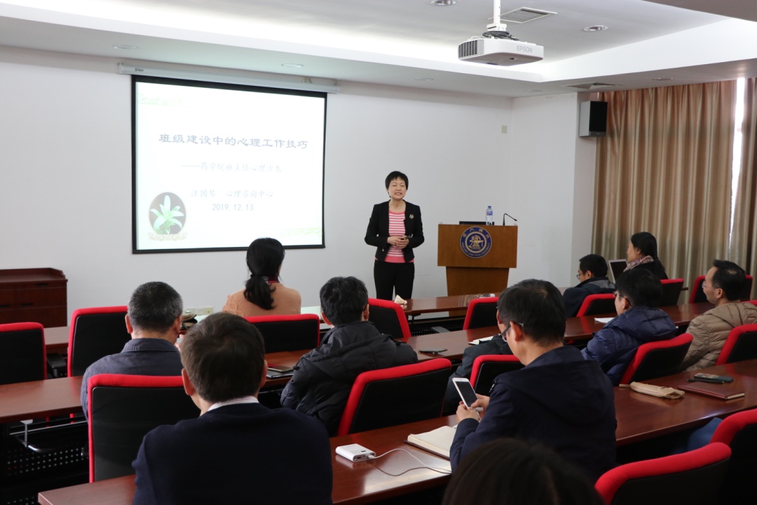 为进一步加强和改进大学生思想政治教育工作,切实做好大学生班主任队伍建设,实现全员育人、全程育人、全方位育人,2019年12月13日,世界杯体育官方网站班主任工作沙龙第二期在5-316会议室举行,校心理咨询中心副主任汪国琴受邀作” 如何在班级建设中运用心理工作技巧”专题讲座。世界杯体育官方网站党委副书记孟祥琦、全体班主任、思政教师、辅导员及学生骨干三十余人参加本次活动。