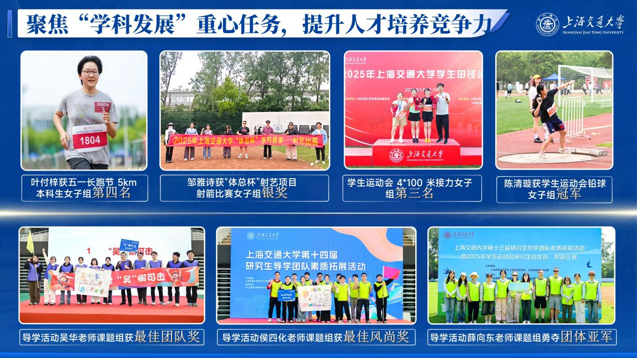 构建“思政教师辅导员+专业教师班主任”协同育人队伍,为青年学子提供全方位领航支持。精心选配资深教授与优秀青年教师担任班主任,选聘政治素质过硬、综合表现突出的优秀研究生担任学生辅导员,充实专兼职思政工作力量,每月常态化开展辅导员班主任工作例会,聚焦班级学风建设、学生心理健康、突发问题处置等工作难点,切实打通育人服务 “最后一公里”,让关心关怀覆盖学生成长全过程。高度重视导学关系建设,推动师生同心共进、同频共振、同向共行。联动教务办举行导师培训会,提升导师育人能力与沟通技巧,为优质导学关系构建奠定基础;广泛动员课题组参与学校导学活动,在全校素质拓展团体赛中吴华课题组“无懈可击队”勇夺第一名,射箭团体赛中薛向东课题组“神奇药师队”荣获亚军,展现出深厚默契与青春活力,有效促进和谐导学关系与课题组氛围建设。