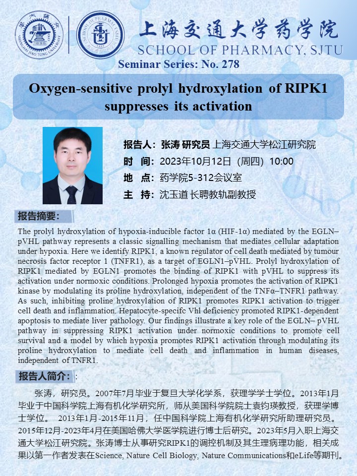 Oxygen-sensitive prolyl hydroxylation of RIPK1suppresses its activation