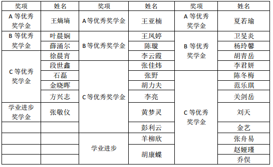 经同学自主申报,教务办、学工办对成绩和科研成果进行认定,评审小组对社会活动进行评定,最终依据各位申报同学的得分高低及奖学金额度值,确定以下同学获得2017年本科生专项奖学金,世界杯体育官方网站学院优秀奖学金,兴全责任一等、二等奖学金,本科生优秀奖学金暨ABC等奖学金,特此公示。